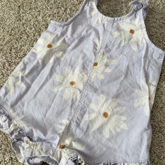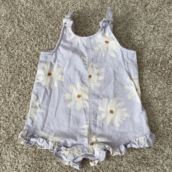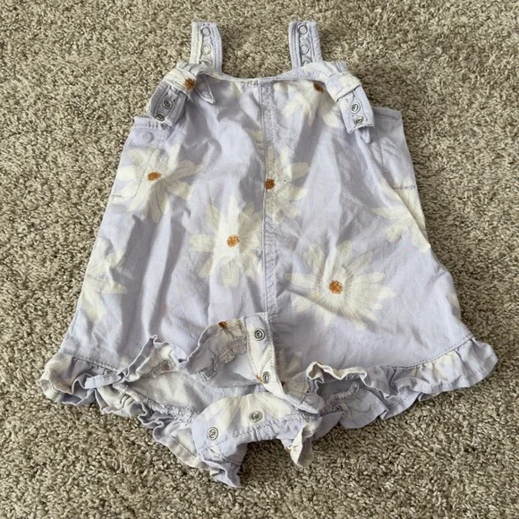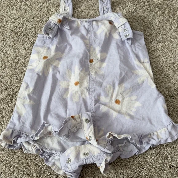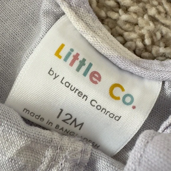 Little Co by Lauren Conrad baby girls toddler girls organic cotton linen pastel purple floral flower romper one piece outfitSize: 12 monthsMaterial: 76% organic Cotton, 24% LinenHas snap buttons on shoulder area and buttons on bottom for easy diaper changesBeautiful color! Super cute!! Looks even cuter in person when wearing!! Washed in non-toxic, fragrance free detergent only