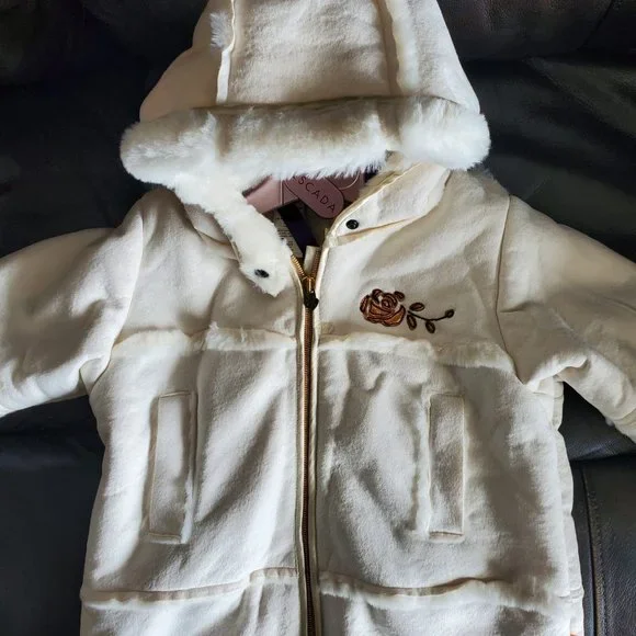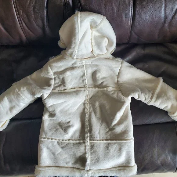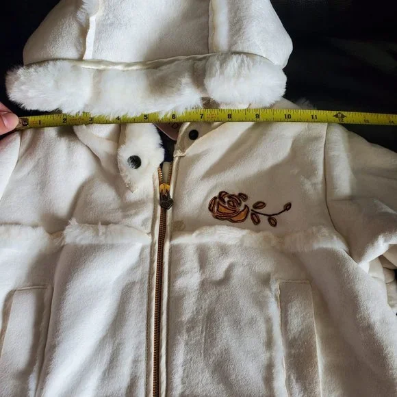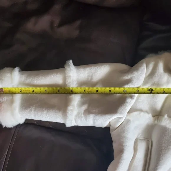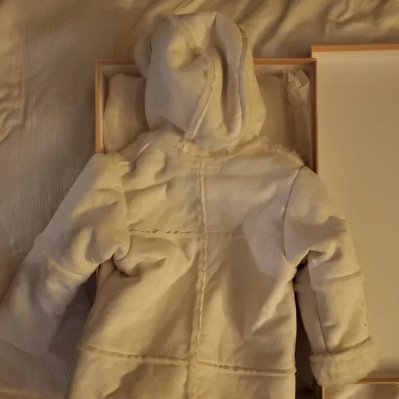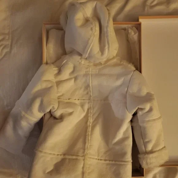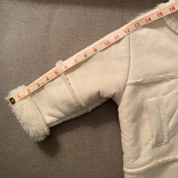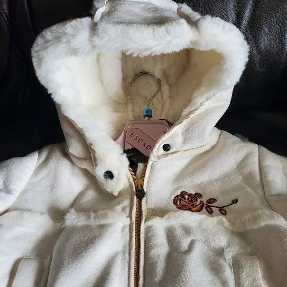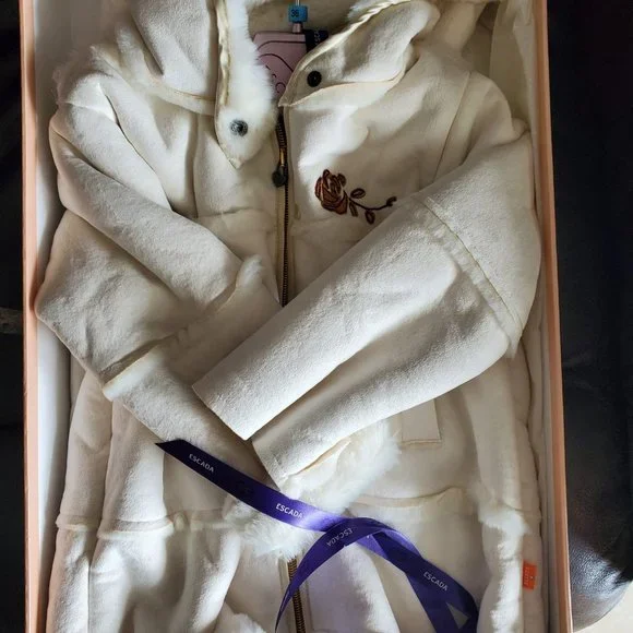 Pictures taken in different lighting conditions for comparison.This offering is a luxurious Girls' Velvety Plush White Shearling Coat from the renowned fashion house, ESCADA. Sized for 36 months, this coat is a perfect blend of style and comfort designed with the highest standards of craftsmanship in France.The coat presents in perfect condition, with no signs of wear or stains, maintaining its pristine, never-worn quality. This gorgeous designer coat is as excellent as shown in the pictures, boasting a beautifully soft and warm shearling lining that adds to its appeal and functionality.All the intricate details and precise measurements of the coat have been meticulously captured in the accompanying photos, leaving no detail to the imagination. This ESCADA coat is a splendid blend of style, comfort, and warmth - a charming addition to any little girl's wardrobe.The item will be lovingly and meticulously packaged then sent to ensure it arrives at its final destination in the same pristine condition it has been kept in.