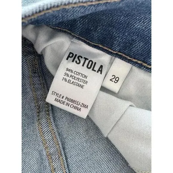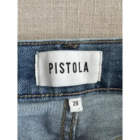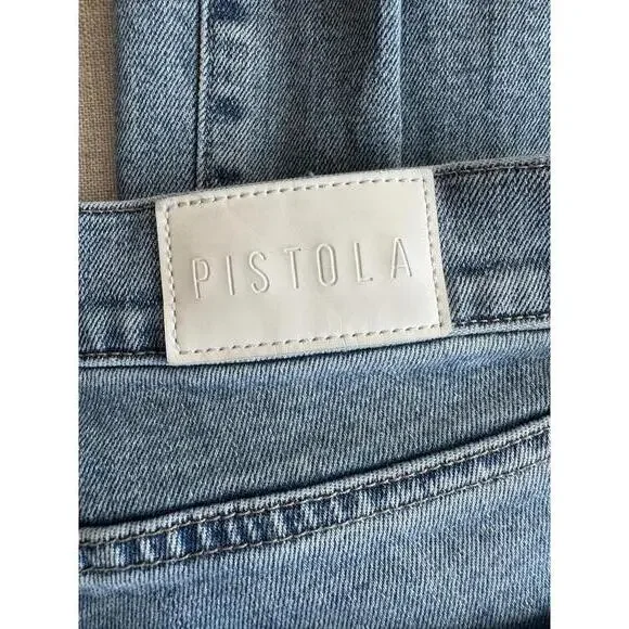 Fits true to size, good level of stretch! Great condition. 94% cotton, 5% poly, 1% spandexZip fly with button closure5-pocket stylingIntentionally distressed areasFrayed raw cut hemShop the Pistola Lennon Jeans in Zuma wash! These high-rise, cropped bootcut jeans feature light stretch, subtle distressing, and a raw hem for a laid-back, on-trend look. Super flattering and versatile—perfect with boots or sneakers. Style #P6088SSJ-ZMA.Inseam: 26 inchesRise: around 11ish inches