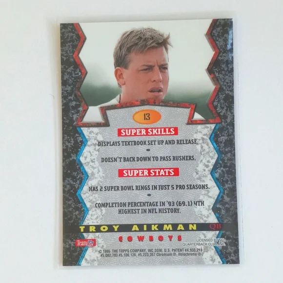 Troy Aikman Dallas Cowboys 1994 Team NFL #20 Football Trading CardUngraded - Good ConditionTroy Aikman Dallas Cowboys 1995 Topps Reflectors#13 Football Trading Card Excellent ConditionUngraded - Near mint or betterNote: All cards are kept in protective sleeves and in a climate control environment. Have been meticulously cared for.Thank you for looking and Happy Poshing!